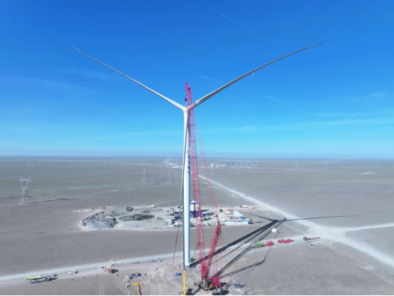 木垒100万千瓦科创风场首台风机成功吊装